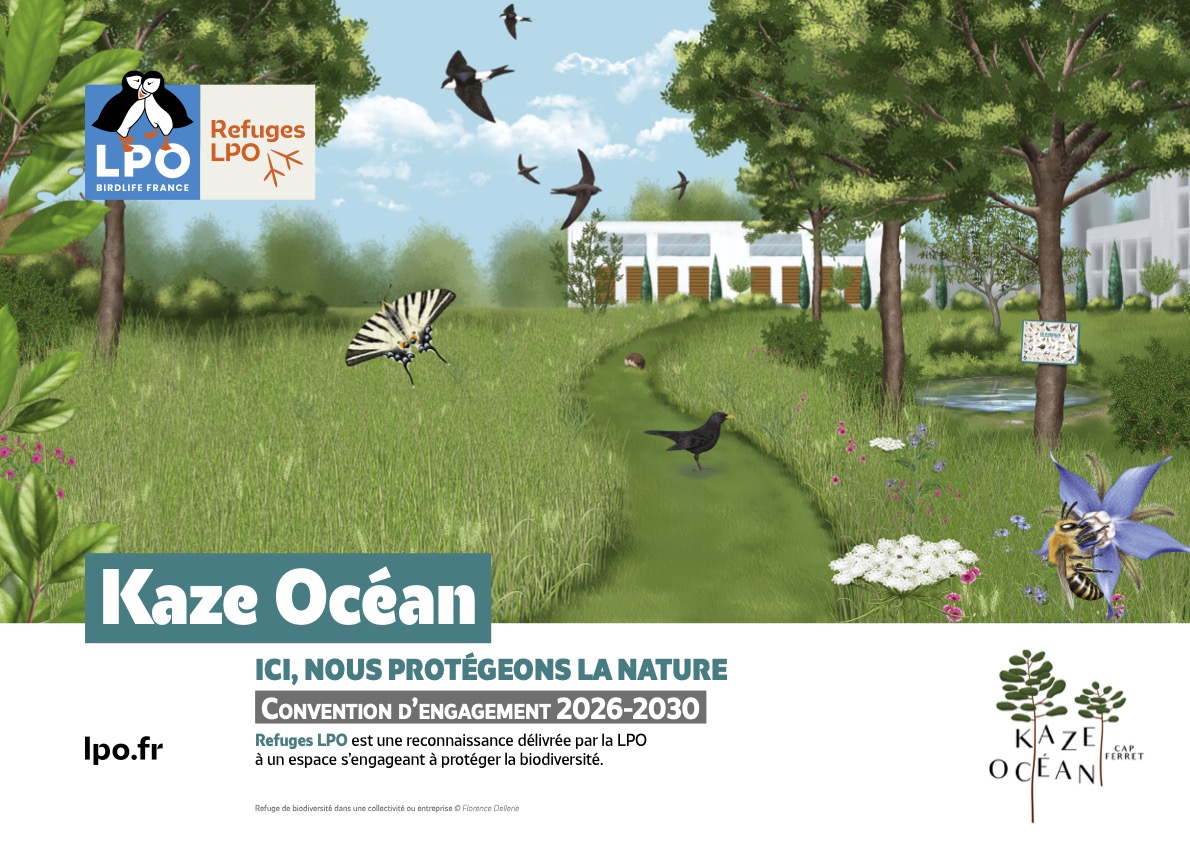 Notre bassin de baignade naturel, notre toiture végétalisée ou encore notre potager d’aromates ne sont que quelques exemples de notre engagement. Avec le label Refuge LPO, nous franchissons une nouvelle étape pour faire de Kaze Océan un lieu où l’humain et la nature coexistent en harmonie.